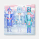 Trois noix de cou jubilantes, portant des cadeaux enchanteurs de la saison hivernale, arborent une tenue royale au milieu d'une forêt baisée par le gel de couleur pastel. Illustration originale de l'artiste Noël Snow.