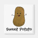 "Patate Douce" en texte noir. Au-dessus du texte se trouve une patate douce marron mignonne avec un grand sourire heureux.