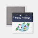 Dites "joyeuses fêtes" avec ce mignon bonhomme de neige et ami patinage sur un étang une nuit étoilée.