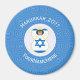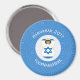Un aimant rond personnalisé montre un ange portant le drapeau d'Israël pour les vacances ou les cadeaux d'Hanoukka. Idéal pour les enfants. L'ange du drapeau israélien se trouve à l'intérieur d'un cercle blanc et fractal de carrés grossiers. L'arrière - plan est une fractale bleue de carrés grossiers. Ajoutez votre propre texte ou personnalisez avec un nom, un jour férié et l'année. Cool empilant pour les familles de religions multiples.