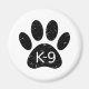 Un mignon empreinte de patte de chien de style dessin animé et texte avec l'effet grunge et angoissé appliqué à l'image. Magnets personnalisés avec thème K9. Idée cadeau.