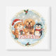Celebrate the holidays with irresistible cuteness in this charming Christmas animal design. Featuring an adorable trio—a ginger cat in a Santa hat holding a wrapped gift, a golden retriever puppy wearing a plaid scarf with a gingerbread bone, and a sweet penguin in earmuffs and a bow tie clutching a candy cane—this scene radiates festive joy. Set in a snowy winter landscape with distant mountains and framed by a decorative scalloped border accented with golden glitter swirls and holly, the playful phrase “Paws & Claus” completes the look. Perfect for animal lovers, this design captures the warmth, whimsy, and cheer of the Christmas season.