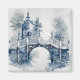 Paysage de style Delft bleu et blanc avec plantes bleus, arbres, rivière, beau pont et une petite décoration d'église pour tous ceux qui aiment la décoration inspirée du style Delft. C'est un cadeau idéal pour Noël, anniversaires, etc. et vous pouvez décorer votre maison avec ce design magnifique et unique.