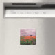 Paysage des Tulipes Rouges. Un paysage printanier imaginaire avec champ de tulipes rouges et moulin à vent à l'horizon contre un aimant frigo ciel violet nuageux. Cet aimant de festival tulipe rouge est entièrement personnalisable, ajoutez vos textes et images !