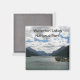 Aimant frigo carré qui présente une photo pittoresque des belles eaux bleues turquoises de Waterton Lakes, Alberta, Canada, qui fait partie du parc international de la paix Waterton-Glacier. Un souvenir de voyage exceptionnel !