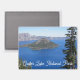 Aimant rectangulaire, frigo qui présente une photo pittoresque du lac Crater bleu saphir et de l'île Wizard dans le parc national Crater Lake, Oregon. Un souvenir de voyage exceptionnel !