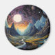 Paysage Imaginaire avec montagnes, rivière et lune Peinture numérique, Odyssée stellaire Un voyage psychédélique dans l'espace,
