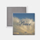 Une belle photo de ciel bleu et de nuage blanc est présentée sur cet aimant de réfrigérateur et est complétée par le mot paix qui semble centré dans ce design. Le mot "Paix" apparaît dans un texte de script fantaisiste dans une couleur bleu foncé. Le mot "Paix" et la police et la couleur peuvent être customisés si vous le désirez.