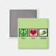 Un signe de paix, un coeur et un avocat vert. J'aime la cuisine délicieuse, y compris la guacamole.