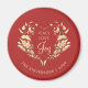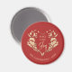 Aimant de Noël personnalisé et festif avec un riche arrière - plan rouge avec une couronne de coeur fleuri doré et les mots Paix, Amour, Joie. Customisé de votre nom de famille et de votre année, cet aimant de vacances fait un parfait souvenir de Noël, le farfeur de stockage, ou la faveur de fête. Une façon élégante de décorer les réfrigérateurs, les cartes magnétiques ou les espaces de bureau tout en coordonnant avec les cartes, les étiquettes, les étiquettes cadeaux et la papeterie de vacances.