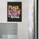 Aimant Peace Love Rock n Roll - Typographie inspirée par
