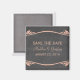Elégant et tendance panneau de signalisation flamboyant Enregistrer l'aimant de date avec un arrière - plan de tableau de bord et une bordure de peach tourbée et feuille art déco fantaisie. Facile à customiser, il suffit d'ajouter les détails de votre mariage. Cliquez sur "Customiser" pour trouver d'autres options de personnalisation.