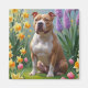 Aimant Peinture des fleurs de printemps de chien Pitbull