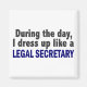 Drôle "Pendant la journée, je m'habille comme un secrétaire juridique" t-shirts, vêtements et cadeaux, en particulier pour les secrétaires juridiques. Une idée cadeau unique d'anniversaire ou de Noël pour ce secrétaire juridique difficile à trouver sur votre liste !