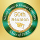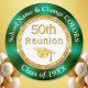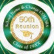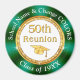 Green, Gold (represents 50 year reunion) and White Class Reunion Magnets. Personalized Class Reunion Gifts. Cheap class reunion gifts for class reunion party favors. You, or Designer Linda: 239-949-9090 ET can TRANSFER this High School Reunion, Design, to more than 1000+ other class reunion favors, class reunion supplies, decorations or more. I, Designer Linda, can create matching and coordinating class reunion party supplies, at no extra cost, in YOUR SCHOOL REUNION COLORS, with or without Photo and other changes.