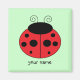 Un mignon coccinelle sur un aimant carré. La couleur et le style de l'aimant peuvent être customisés. Ajoutez votre nom ou le nom d'un ami pour une idée cadeau amusante !