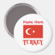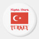 L'aimant rond personnalisé est orné du drapeau turc. Ci-dessous, le mot TURKEY apparaît en lettres rouges. Espace pour un nom ci-dessus, en lettres rouges, pour une personnalisation supplémentaire ou pour vous aider à créer un cadeau customisé. Merveilleux pour les souvenirs de réunions de famille, de groupes de voyage et de clubs. Un étouffeur de stockage amusant à Noël. Célébrez votre patrimoine d'une manière simple, mais cool.
