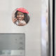 Magnets ronds Photo Memorial personnalisés, un design simple, chic et moderne avec police serif sophistiquée, nom personnalisé, date et photos, pour un look élégant et sophistiqué.