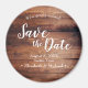 Personnalisez ce mariage unique Enregistrer la Date cercle magnets. Il présente des lattes en bois foncé imprimés de forme ronde, parfaits pour votre mariage rustique et romantique. Customiser les noms des futurs futurs futurs mariés et des futurs futurs mariés, la date du mariage et l'emplacement.