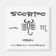 Arrière - plan blanc avec écriture noire. A 2 symbals différents pour "Scorpio" le mot "scorpio" et "loyal" et "Octobre 24 - Novembre 22" sur elle. personnalisez avec votre nom.
