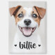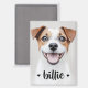 Aimant frigo photo avec votre photo d'animal de compagnie personnalisée avec le nom de l'animal comme un texte noir (ou couleur personnalisée) superposé flanqué de deux coeurs.