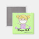 Petite fille aux cheveux blonds en pigtails garde la forme en faisant ses étirements! Design original par Christie Black de Creations from the Heart.