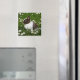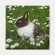 Un lapin simple, mignon et solitaire grignote avec désinvolture quelques verts frais; entouré de jolies fleurs blanches de marguerite.