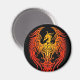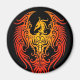 Ce design de phoenix rouge et jaune est décoré de tourbillons tribaux fluides et de motifs de points. Les ailes symétriques s'étendent de chaque côté du motif tandis que la queue tombe au centre formant un point à la base. Les traits gras sont mis en surbrillance, ce qui crée une brillance subtile sur la surface. Ce phoenix agressif mais élégant est installé sur un arrière - plan noir pur qui crée un design d'aimant magnifique et élégant.
