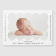 Un aimant faire-part de naissance simple et moderne avec la photo de votre bébé nichée à l'intérieur d'un cadre à pétoncles blancs. Personnalisez l'aimant faire-part de naissance en ajoutant le nom de votre bébé et des informations supplémentaires en lettres noires.