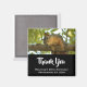 Un aimant de fête avec une adorable image d'un écureuil brun debout sur une branche d'arbre vous regardant avec un visage curieux.
