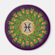 Une couronne colorée en plumes de paon est personnalisée avec le signe Zodiaque Pisces — The Fish. Ce symbole zodiaque s'adresse à tous ceux qui sont nés entre le 19 février et le 20 mars.* Ces couleurs brillantes en plumes de paon conviennent à la fois aux arrière - plans sombres et légers (aubergine ici). *Source : www.astrology-zodiac-signs.com