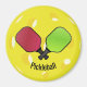 Pickleball Design Magnet avec du texte personnalisable. Le Pickleball est un sport de raquette et de pagaie qui a été créé en combinant des éléments de plusieurs autres sports de raquette. Deux ou quatre joueurs utilisent des pagaies solides pour frapper une boule de polymère perforée (comme une boule de torsion) sur un filet.