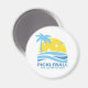 Un aimant amusant à pickleball avec un "soleil" de pickleball encadré par un palmier tropical et des vagues bleues de l'océan. Ajoutez votre texte personnalisé ci-dessous - nom du club, date/lieu du week-end de pickleball, nom du tournoi, nom du joueur, etc. Fait un cadeau parfait pour n'importe quel joueur de pickleball.