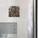 Un aimant avec la photo d'un ensemble de pinceaux d'artiste et de peintures anciennes assis dans un vieux coque en bois. Tout semble sale, désordonné et bien utilisé avec beaucoup de brosses de différentes tailles assis dans de vieilles boîtes en étain rouillées de peinture.