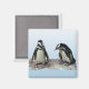 Cet aimant présente deux adorables pingouins africains debout sur une corniche rocheuse. Ce sont des oiseaux aquatiques sans vol dont les ailes sont devenues des palmes. Chacune a une bande noire et des taches noires sur la poitrine. Le motif de taches est unique pour chaque pingouin, tout comme les empreintes digitales humaines. Ils ont des glandes roses au-dessus des yeux et des pieds roses et noirs.