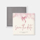 Elegant pink bow bridal shower save the date magnet with a cream and watercolor pink background. With a beautiful pink bow and handwritten typography, this save the date will be the delight for her bridal shower guests. Illustrated and designed by Patricia Alvarez.