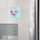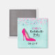 Bachelorette party magnet with a high heel stiletto shoe in hot pink. Pink confetti sprinkled along the top. Set on a mint green watercolor background.