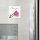 Une tulipe rose et souple contre un arrière - plan blanc sur cet aimant est une façon merveilleuse de rappeler à cette personne spéciale dans votre vie combien vous les aimez. Customisez cet aimant un nom pour un grand cadeau!