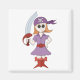 A girl wearing a pirate costume with a headscarf, boots and holding a sword ready to trick or treat on halloween night.