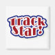 Design de texte en rouge, blanc et bleu Track Star sur les t-shirts étoiles de piste, tasses, sacs fourre-tout, iPad et coques iphone, des gardiens, et d'autres articles!