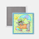 Vous profiterez de cet aimant d'art pour chien de fantaisie. "Je suis prêt à jouer" - n’est-ce pas. Ce chien est prêt à s’amuser à la plage avec un ballon de plage et un parapluie. Avec des lunettes de soleil cool, des tongs fuchsia et turquoise, un tee - shirt de plage orange et un casquette de plage violet, il est prêt à partir, habillé en style. L'arrière - plan est vert avec des étoiles violettes et une bordure bleue. Le soleil brille pour une journée parfaite et il est prêt pour vous à lancer le ballon. Le texte en bas dit "Je suis prêt à jouer".