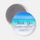Un aimant de remerciement de mariage avec une plage tropicale sablonneuse. Une mer turquoise magnifique au loin et des eaux cristallines qui caressent une plage de sable. Un ciel bleu vif à l'arrière-plan.