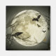 Halloween et image à thème gothique. Une grande lune pleine nuit avec des chauves-souris qui volent et un corbeau assis sur la branche d'un arbre escarpé.