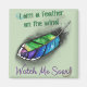 Tableau original de Sandra Gale, avec une plume multicolore peinte en aquarelles et entourée de petites plumes floues qui soufflent au vent. Un design très inspirant qui conviendra à merveille aux enfants, aux athlètes, aux campeurs, ou comme cadeau à toute personne qui aime la nature et qui pourrait utiliser un art stimulant et original.