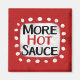 "More Hot Sauce" est un design de texte mignon en rouge avec du texte en noir et rouge, avec une forme d'accent blanc et des points blancs à texture blanche.