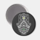 Protéger la main de Hamza avec l'oeil vert - blanc sur noir. Version plus courte. Joli et pointu Hamza Main ressemblant à un tatouage. Aimant pratique avec main Hamza.
