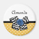 Ajoutez une touche girly à votre style personnel avec ce mignon aimant motif à pois jaune et blanc avec un arc en chevron noir et blanc tendance et un rose à ruban bleu chic. Faites de ce rétro jaune et bleu répond au design moderne personnalisé en ajoutant le nom de votre ado fille. Image imprimée plate, PAS le ruban de rosette réel et l'arc.