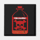 Bouteille avec crâne et os croisés dit "Religion" et en-dessous "avertissement : l'usage habituel provoque la haine, l'intolérance et une guerre sans fin."