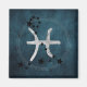 Une constellation d'étoiles noires flotte au-dessus du symbole astrologique de Pisces le poisson jumeau, entouré d'un cadre d'un tableau d'astronomie en argent sur un arrière - plan bleu turquoise en détresse. L'accessoire parfait pour quelqu'un né sous le signe de l'Eau des Poissons - Février 19 à Mars 20.