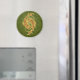 Ce symbole stylisé pour le signe zodiaque de Pisces est décoré de lignes complexes et de motifs de points. La conception symétrique comprend deux poissons élaborés qui s'intègrent dans un motif Yin yang. Ce magnifique aimant jaune et vert est une belle et élégante façon de montrer votre signe astrologique.